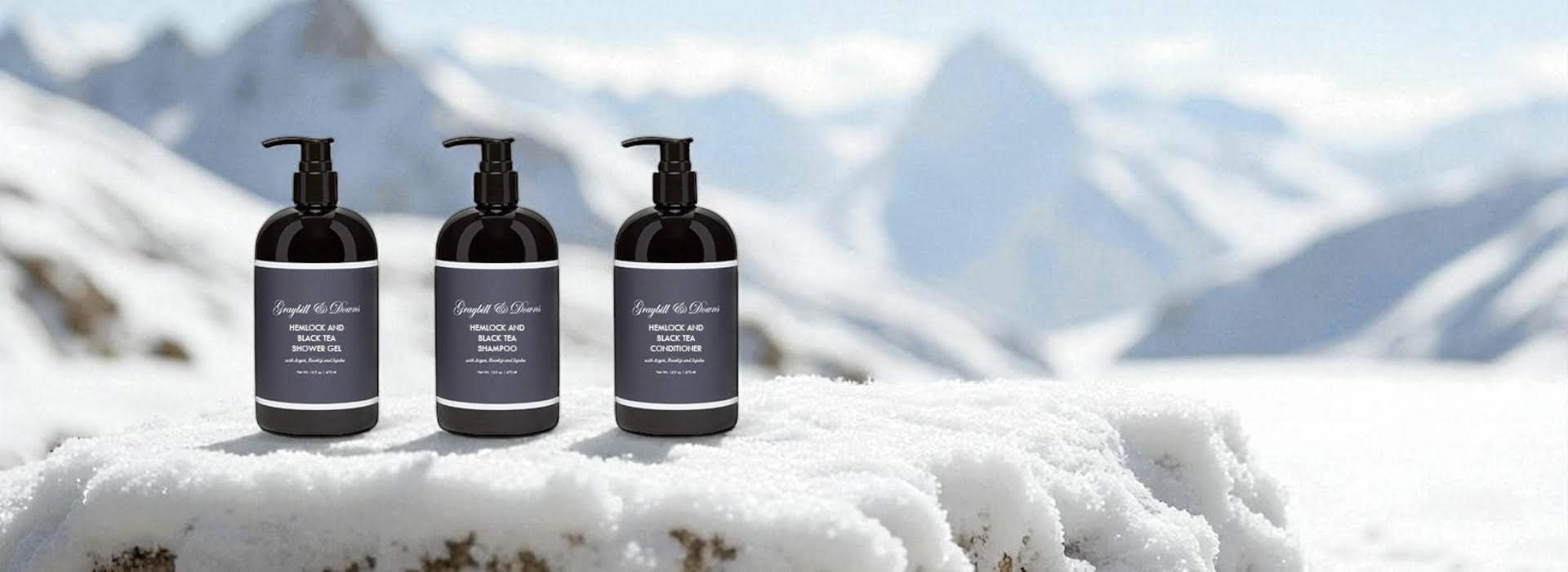 Plunge into a polar experience that is bearable and will transport you to the great outdoors with our Hemlock and Black Tea Shower Gel, Shampoo and Conditioner.